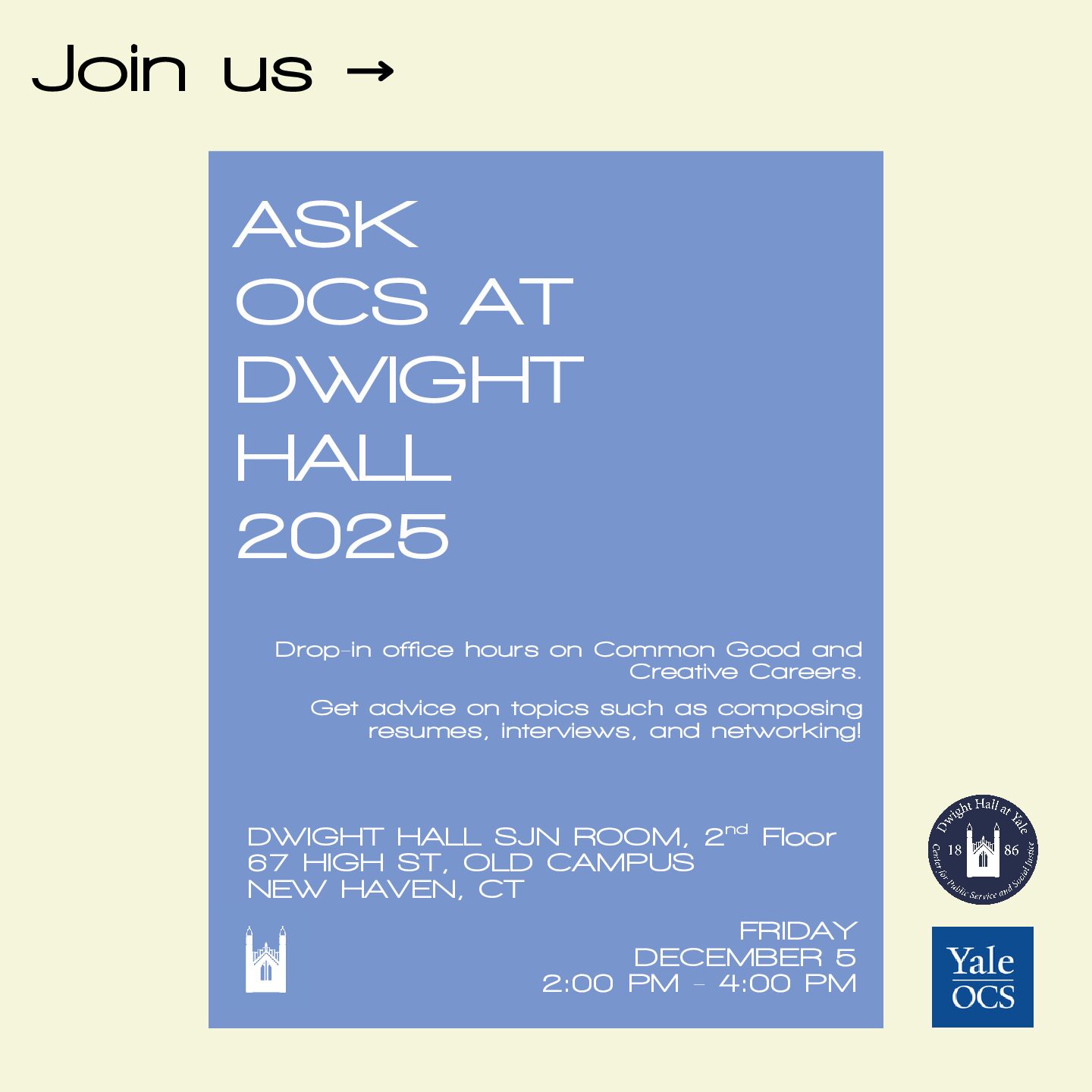 Ask OCS at Dwight Hall with Jorimel Zaldivar